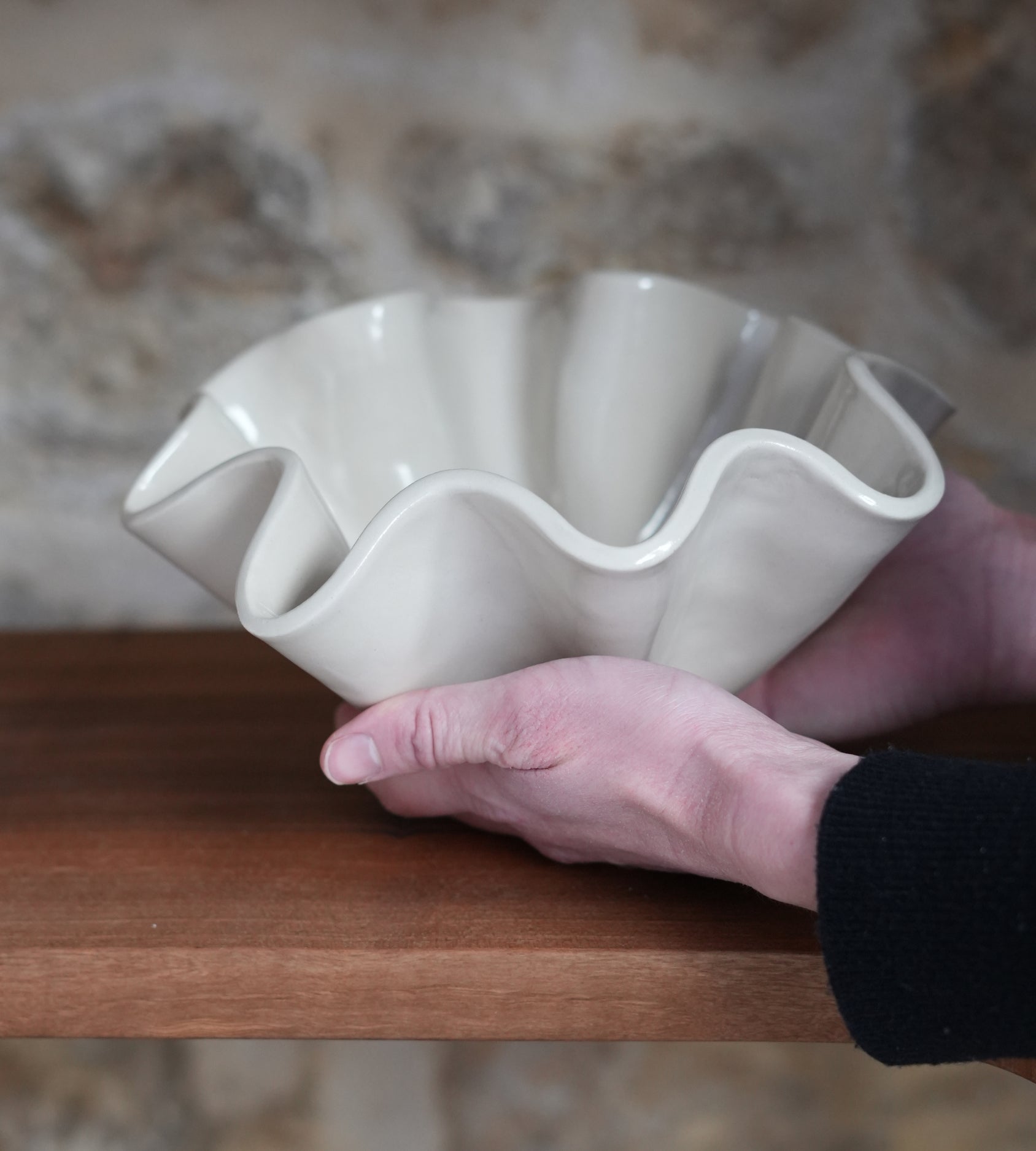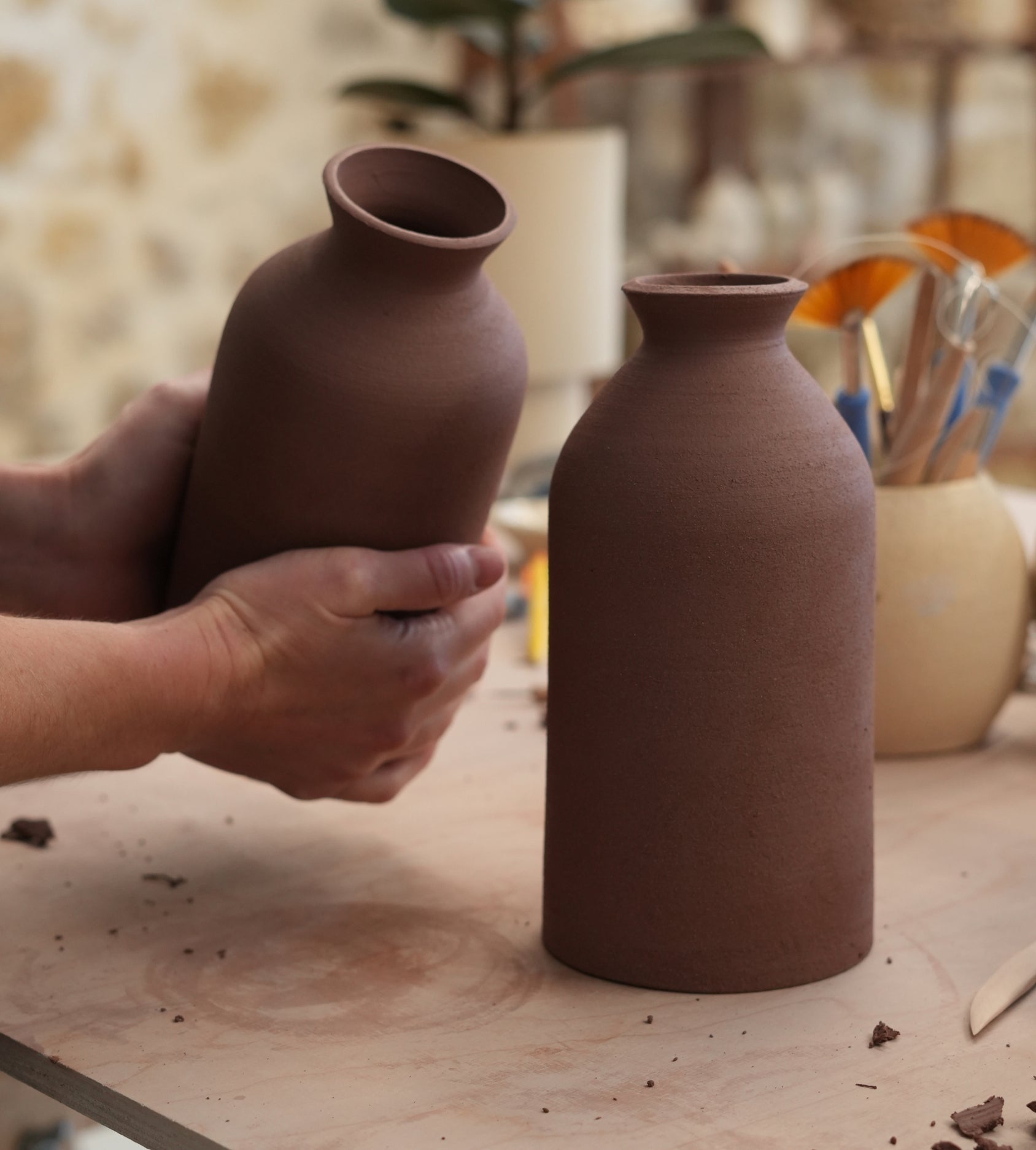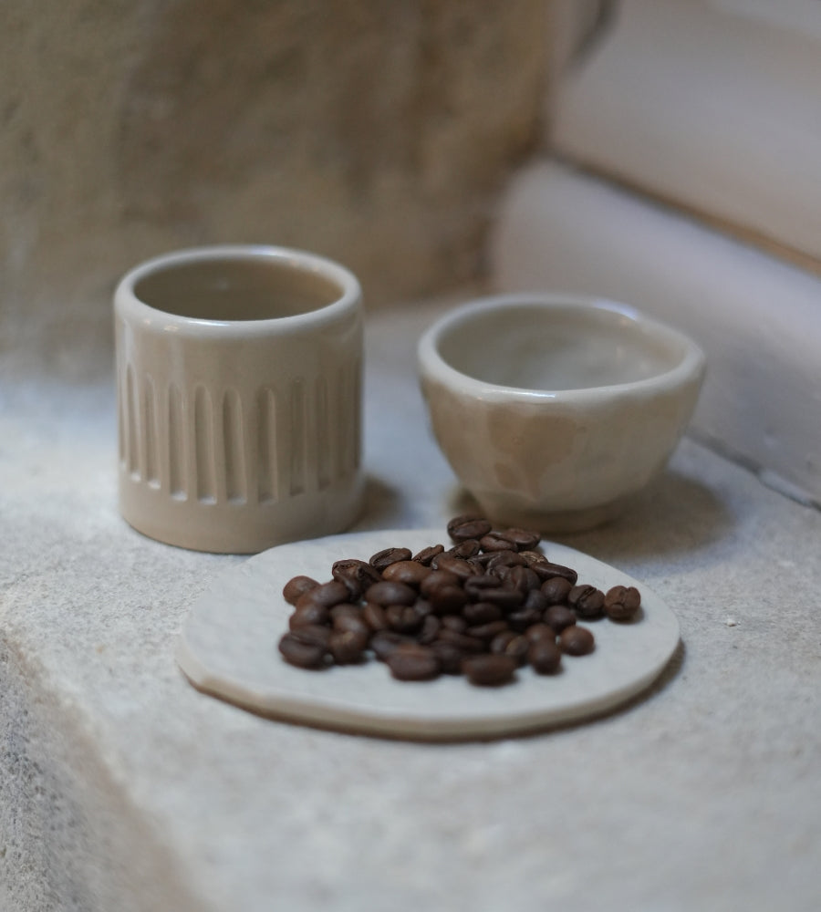 Les céramiques sont entièrement façonnées à la main par Marine, céramiste passionnée. Chaque objet en grès est unique, durable, et produit de manière responsable à Bordeaux.