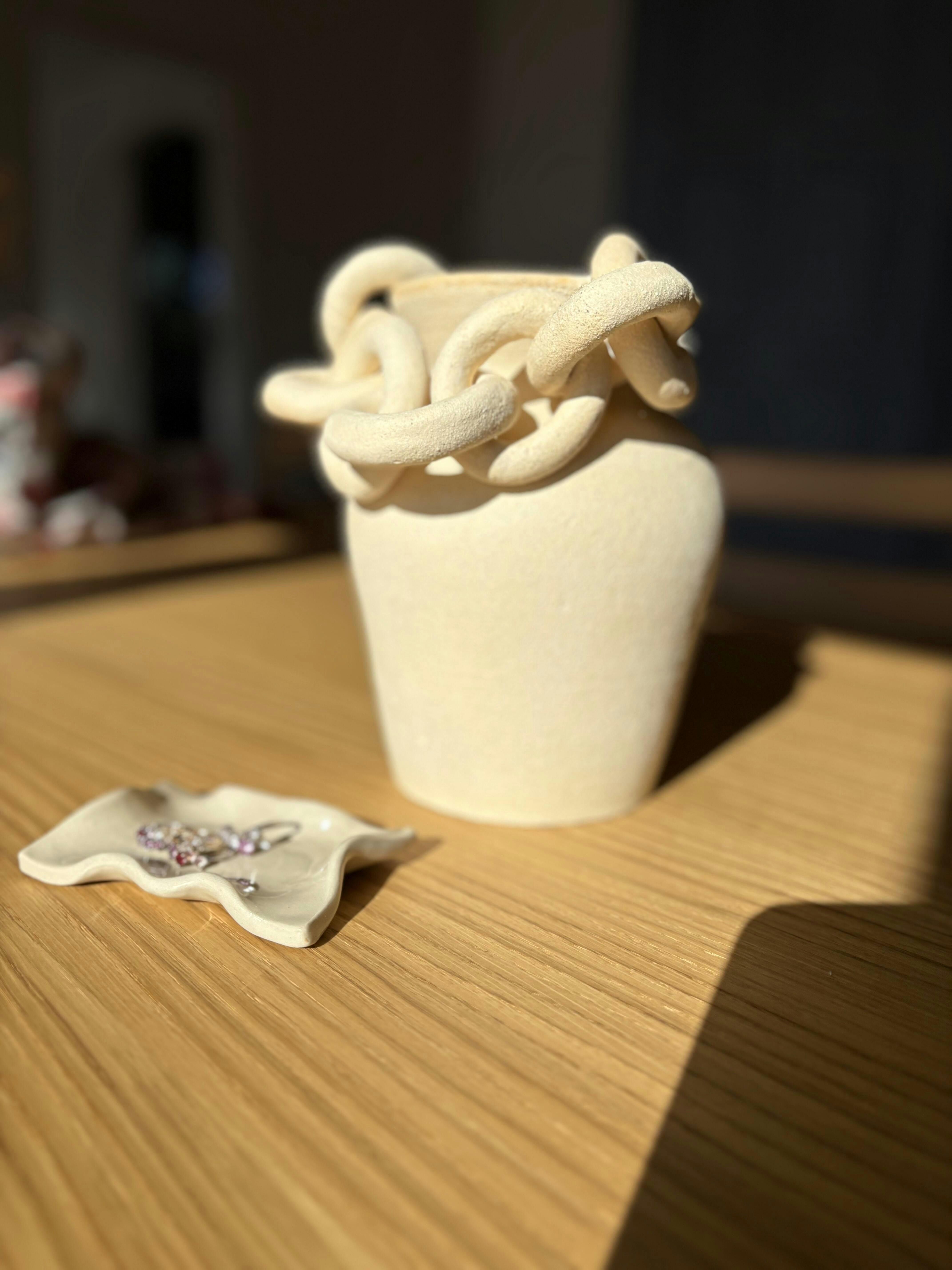 Les céramiques sont entièrement façonnées à la main par Marine, céramiste passionnée. Chaque objet en grès est unique, durable, et produit de manière responsable à Bordeaux.